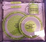 - Set includes: plate, bowl, sippy cup, spoon and fork